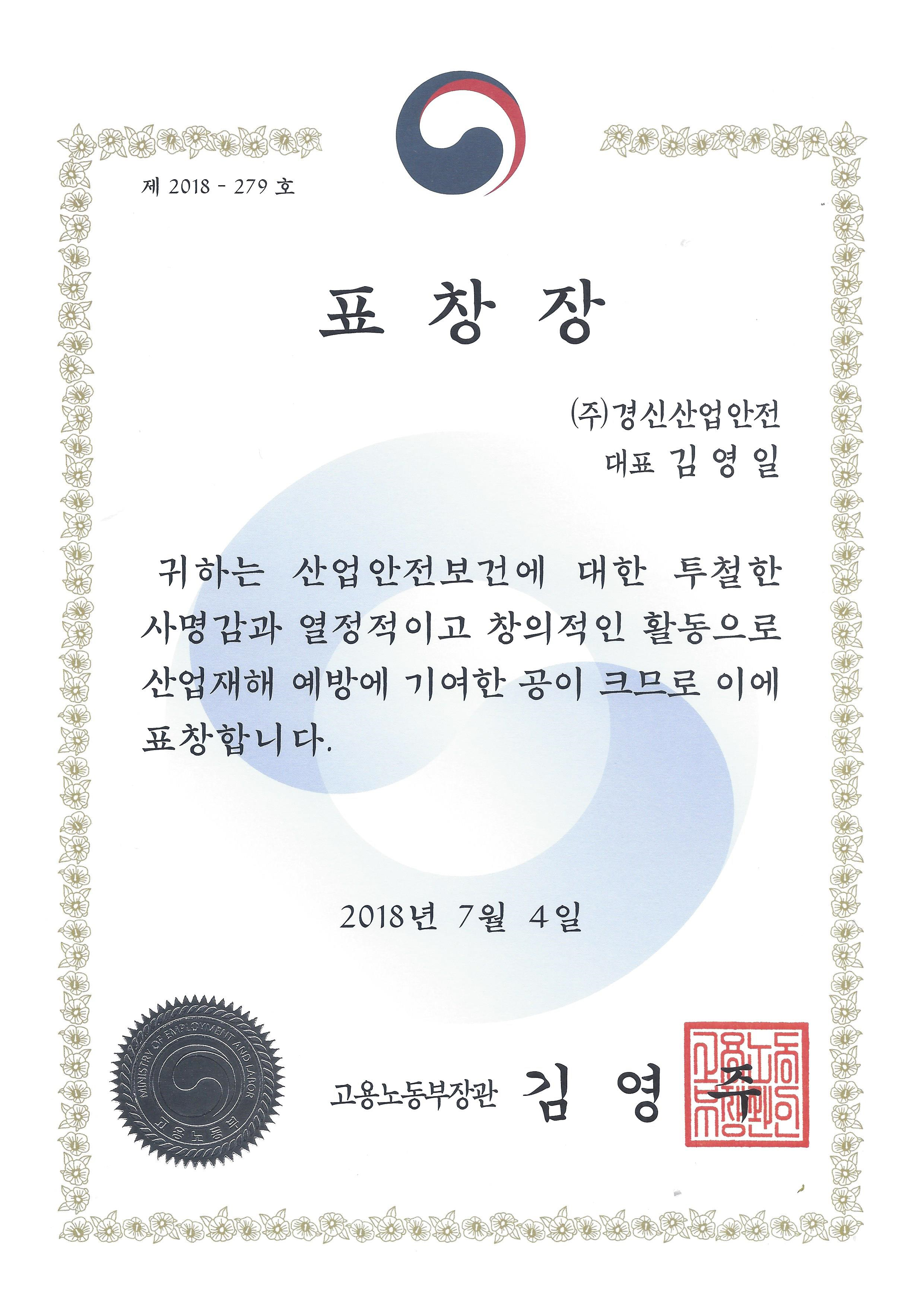 "2018년도 산재예방유공자 포상 [노동부장관상]"